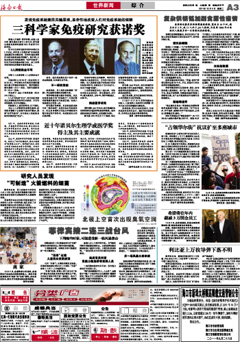 海南日报 世界新闻 综 合 003 2011-10-041 2011年10月04日 星期二
