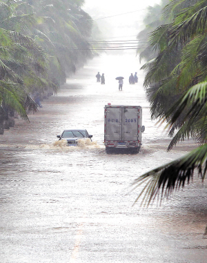 10月5日,海口市海甸二东路成了“一条河”。 本报记者 李英挺 摄