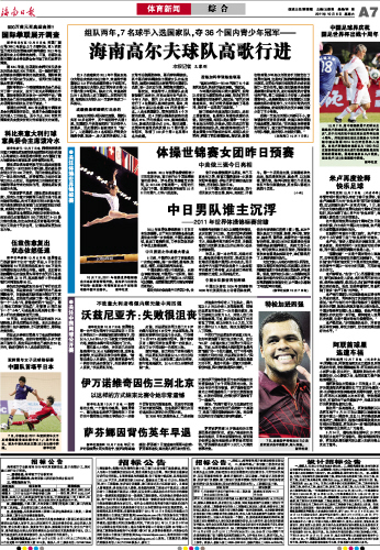 海南日报 体育新闻综合 007 2011-10-081 2011年10月08日 星期六