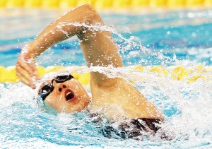 8日,在阿联酋迪拜举行的2011短池游泳世界杯赛中,王施佳以1分56秒76的成绩夺得女子200米自由泳金牌。 新华社发