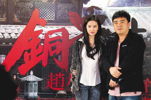 刘亦菲出演女主角 8日,大型史诗电影《铜雀台》在河北涿州影视基地正式开机。演员刘亦菲将在片中饰演女主角灵雎,与周润发饰演的男主角曹操演绎一段英雄美人的故事。图为导演赵林山(右)与演员刘亦菲出席《铜雀台》开机仪式。 新华社发