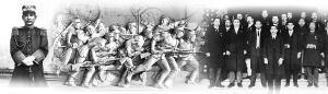 上图左:就任大元帅时的孙中山。图中:天安门人民英雄纪念碑武昌起义浮雕。图右:孙中山1912年在南京宣誓就任临时大总统和总统府职员合影。 新华社发