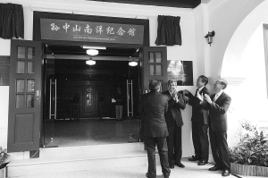 10月8日,新加坡副总理兼国家安全统筹部长及内政部长张志贤(右二)等为新加坡孙中山南洋纪念馆揭幕。 在纪念辛亥革命100周年之际,新加坡孙中山南洋纪念馆———晚晴园经过一年的修整翻新后于当日正式揭幕并向公众开放。晚晴园始建于19世纪,是一座凸字形的两层楼建筑,原是南洋富商张永福供奉其母安享晚年的别墅,后转赠“伟大的革命先行者”孙中山先生用于革命活动,是新加坡最珍贵的国家级古迹之一。从1900年7月至1911年12月,孙中山曾先后8次造访新加坡。 新华社发