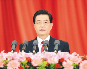 | 10月9日,纪念辛亥革命100周年大会在北京人民大会堂隆重举行。中共中央总书记、国家主席、中央军委主席胡锦涛在大会上发表重要讲话。 新华社记者 李涛 摄 |