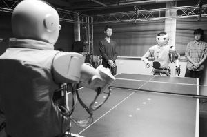 9日,仿人机器人“悟”和“空”在浙江大学智能系统与控制研究所一张标准的乒乓桌前正式向世人亮相,并开始了他们的首次乒乓球“公开对决赛”。这是目前世界上首个宣布研制成功的、具有快速连续反应能力的仿人机器人。