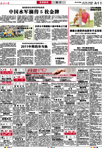 | 海南日报 体育新闻 011 2011-10-101 2011年10月10日 星期一 |