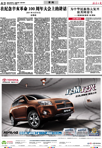 | 海南日报 要 闻 002 2011-10-101 2011年10月10日 星期一 |
