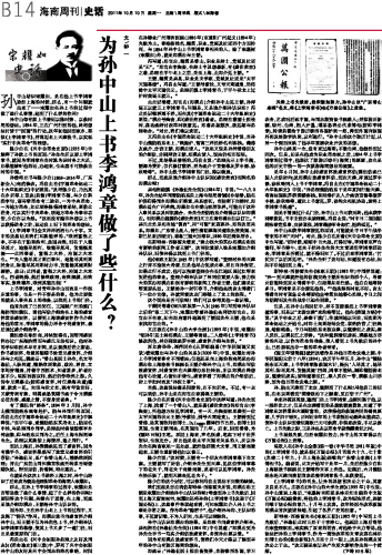 为孙中山上书李鸿章做了些什么?