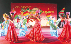 | 海口市夕阳红艺术团在国庆活动中表演舞蹈 本报记者 陈德雄 摄
