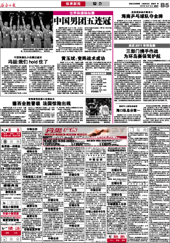 海南日报 体育新闻 013 2011-10-131 2011年10月13日 星期四