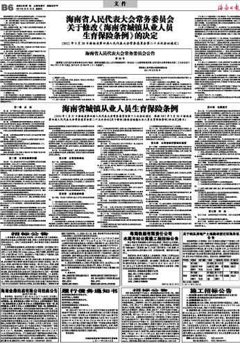海南省人民代表大会常务委员会关于修改《海南省城镇从业人员生育保险条例》的决定
