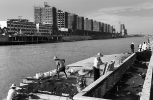 | 10月13日,100多名工人在文澜江两岸加紧施工,以保证北部湾首届渔歌节暨临高第五届渔民节如期召开。