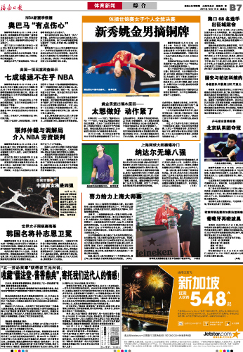 海南日报 体育新闻 015 2011-10-141 2011年10月14日 星期五