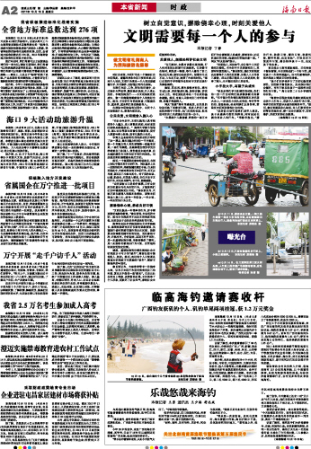 海南日报 本省新闻 002 2011-10-161 2011年10月16日 星期日
