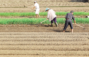 10月16日,海口市秀英区业里村,菜农在整理积水刚退的菜地,准备播种生长周期短的叶菜,预计20天左右,这批叶菜就可以上市销售。 由于国庆期间持续降雨,造成海口市蔬菜供应主要基地之一———业里村蔬菜地被淹。灾后,菜农全力开展生产自救,恢复灾后生产工作,做到水退一块,抢种一块。 本报记者 李英挺 摄