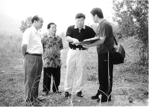 | 苏庆兴(右二)到落笔村调研落笔洞遗址保护情况 |