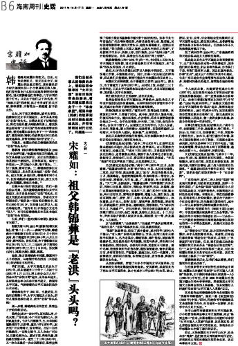 宋耀如:祖父韩锦彝是“老洪”头头吗?
