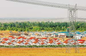 图为已通电的宁夏灵武市狼皮子梁生态移民点。“十二五”开局之年,宁夏回族自治区银川市将对7.8万人进行生态移民安置工作。为此,银川市供电局计划投资1724.87万元为5个移民点新建10千伏线路43.7千米等,以满足移民新村用电需求。