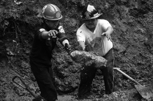10月16日,救援人员在危地马拉卡纳莱斯镇博卡-德尔蒙特村搜索在大雨引发的泥石流中的遇难者。据悉,持续5天的强降雨引发的洪水已经导致28人死亡,14.7万人受影响。 新华社/法新