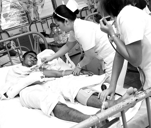 10月19日,菲律宾士兵在菲律宾南部城市三宝颜的医院里接受治疗。 菲律宾军方和警方18日晚间证实,政府军特种部队当天早晨在南部巴西兰省同反政府武装人员发生激烈武装冲突,导致政府军方面12人死亡,反政府武装方面7人死亡。 新华社/法新