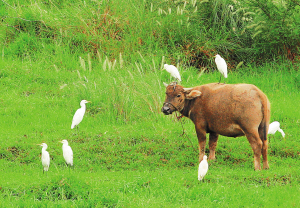 | 在万宁兴隆湿地,几只白鹭与水牛和谐相处,相映成趣。 本报记者 于伟慧 摄