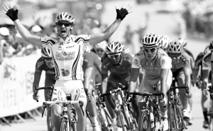环岛赛开赛第一天就爆出冷门,拉脱维亚马赛队车手贾斯丁·朱尔斯击败了大名鼎鼎的阿斯塔纳队的车手,勇夺赛段冠军。冲过终点时,贾斯丁高举双手,喜不自禁。但来到颁奖现场时,他已从兴奋之中平复下来。