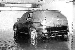 | 亚洲豪苑车库里被淹的车辆。