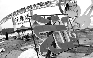 | 万宁国际冲浪节开幕式场地正在加紧施工。本报记者 王凯 摄 |
