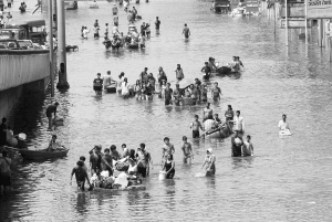 10月21日,在泰国巴吞他尼府,人们从洪水灾区撤离。 泰国总理英拉21日宣布启动“防灾减灾法”,以更好地应对持续肆虐的洪灾。同一天她还发布了对曼谷的洪水预警。“防灾减灾法”颁布于2007年,一经启动,将赋予总理处理自然灾害相关事务及实施救灾计划的最高权力,拒不服从者可以失职罪依法论处。 新华社/路透