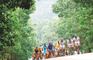 | 21日,选手在骑行第二赛段的最后25公里。 本报记者 宋国强 摄 |