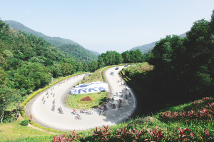 | 21日,选手骑行在曲折回转的S形的山路中。 本报记者 宋国强 摄 |