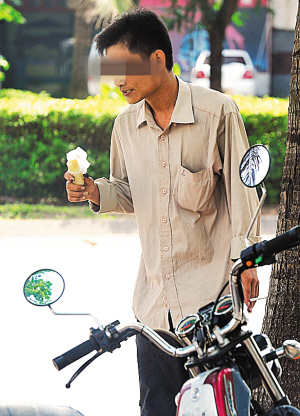 ↑10月23日13时30分,海口南海大道明光大酒店前槟榔摊点。 本报记者 古月 摄