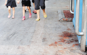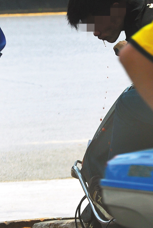 ↑10月23日12时58分,海口南海大道路边。 本报记者 古月 摄 ←10月22日,三亚市市区多处可见槟榔汁。 本报记者 苏建强 摄
