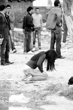 10月23日,在土耳其东部凡省,一名女子在地震后跪地痛哭。 新华社/阿纳多卢通讯社