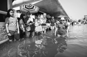 曼谷市内居民正忙于囤积食品和饮用水,大量超市出现断货,全国约有350家便利店和超市因断货而被迫暂停营业。另外,泰国银行25日称,全国有283家银行网点因遭受水灾而停业,其中约一半在受灾严重的巴吞他尼府,另有21家在曼谷。