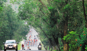 本报屯城10月25日电(记者黄晶)环岛赛第六赛段今天绕行海南岛美丽的中部重镇———屯昌,但凡车队所到之处,总少不了观赛的群众,让车手不得不感受到屯昌人对体育的热情与厚爱。