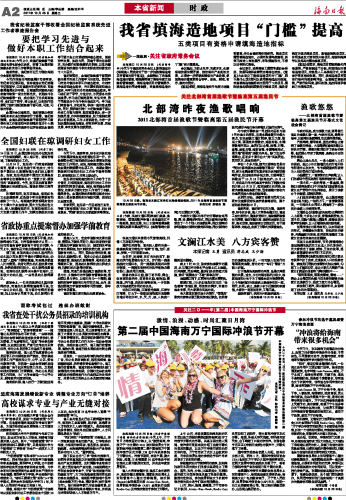 海南日报 本省新闻时政 002 2011-10-261 2011年10月26日 星期三