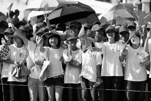 在第二赛段的出发仪式上,五指山市观众为车手呐喊助威。