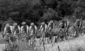 | 27日,阿斯塔纳职业队6名车手在第一大团中领骑。