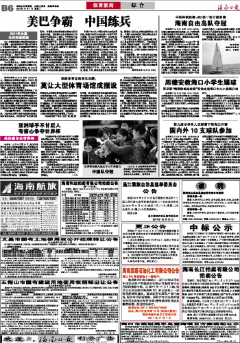 海南日报 体育新闻 014 2011-11-011 2011年11月01日 星期二