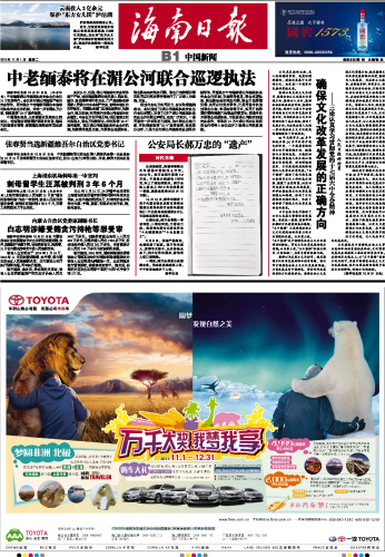 海南日报 中国新闻 009 2011-11-011 2011年11月01日 星期二