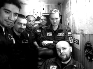6名志愿者即将结束近一年半的“火星之旅”,定于2011年11月4日“返回”地球。 作为“火星—500”实验项目的参与者,俄罗斯、中国和欧洲6名志愿者2010年6月3日在俄罗斯首都莫斯科的医学生物问题研究所进入实验舱,“飞往火星”。这一项目计划为期520天,模拟宇航员搭乘航天器飞往、登陆火星和返回地球。 这张2011年10月25日发布的视频截图,显示的是参与“火星—500”实验项目的志愿者们在执行任务(2011年8月摄)。 新华社/法新