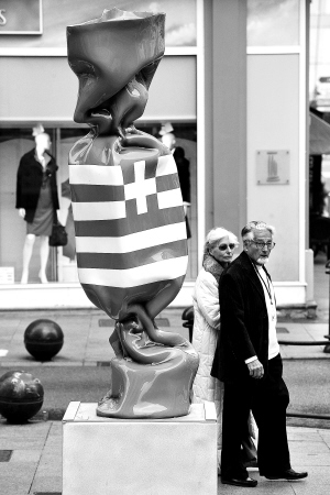 这是11月2日在法国南部海滨城市戛纳拍摄的以希腊国旗为图案的糖果雕塑。 新华社记者武巍摄