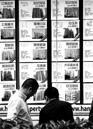 11月4日,市民在上海市江苏路上的房屋中介所前查看二手房信息。 上海二手房指数办公室11月3日发布的报告显示,2011年10月,上海二手房指数为2597点,较上月下降3点,这是上海二手房指数自去年9月以来首次下降。 经统计,上海新兴中心城区10月二手房价格首现下跌,下跌0.18%,多个外围新盘出现大幅优惠。随着上海一手房打折促销的蔓延,二手房价已开始进一步显现松动迹象。 新华社记者 陈飞 摄