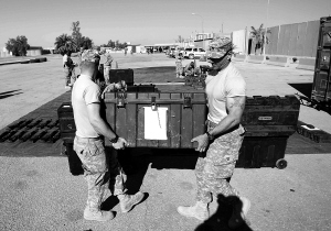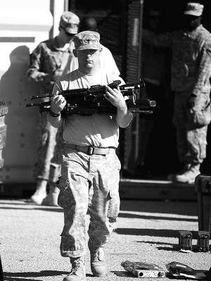 11月3日,在伊拉克纳西里耶的一处军事基地,美军士兵搬运装备准备撤离(左图)。 驻伊拉克美军高级指挥官托马斯·斯波尔3日表示,美军正在迅速撤离伊拉克,按照当前速度,绝大多数美军士兵将在今年12月中旬之前撤离。 新华社/路透