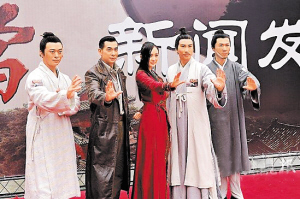 | 杨幂率一众男演员出席《大武当》记者会。 |