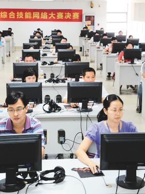 | → 11月5日上午,参加省级机关综合技能网络大赛决赛的选手正在上机竞技。