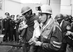 | 11月5日晨,获救矿工正在升井。
