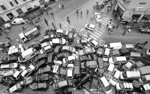 11月5日,在意大利西北部城市热那亚市区,在暴风雨中损毁的汽车堆积在一起。 热那亚4日遭暴雨袭击,在部分城区引发洪水,已导致7人死亡。 新华社/路透
