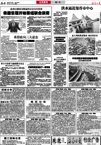 海南日报 世界新闻 综 合 004 2011-11-061 2011年11月06日 星期日